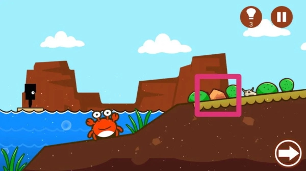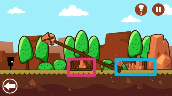 在石头方的投石器上,拿斧子砍断绳索,就能得到第二个三角形。接着,用铁锹去挖土包,进而获取第三个三角形。把这三个三角形放在放大的石头上,就可以继续闯关啦~