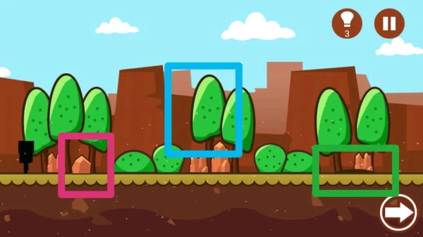 挑选红色框里的石头,点击蓝色框中的树来获取三角形,留意这个土包,一会儿我们得找个挖掘工具。