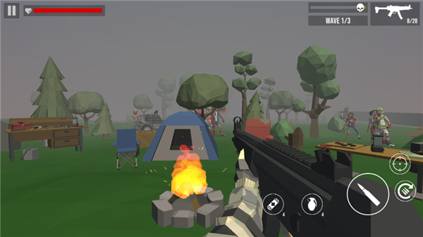 同时游戏玩法非常简单,采用第一人称视角,当源源不断的僵尸入侵时,玩家只需要瞄准射击,一枪爆头或是利用手雷,造成大片的伤害,生存到最后即可。
