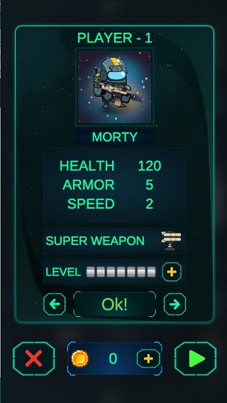 不仅如此,僵尸太空射击2还提供了2P功能,如同童年的红白机,在此玩家可以邀请好友,在同一台设备上进行冒险闯关,当然也可以自行参与全部冒险,根据已解锁的大量武器和道具,享受这场人与僵尸极致的较量吧!