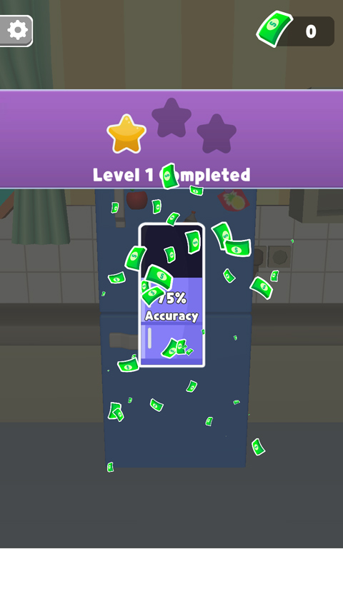 5、最后,成功塞满冰箱的储物柜即可通关,会依据获得的星星数量奖励钞票。