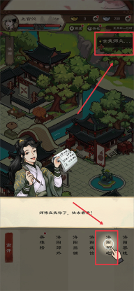 2、接着依据右上角的任务完成目标,比如去寻找师傅,点击洛阳民宅。