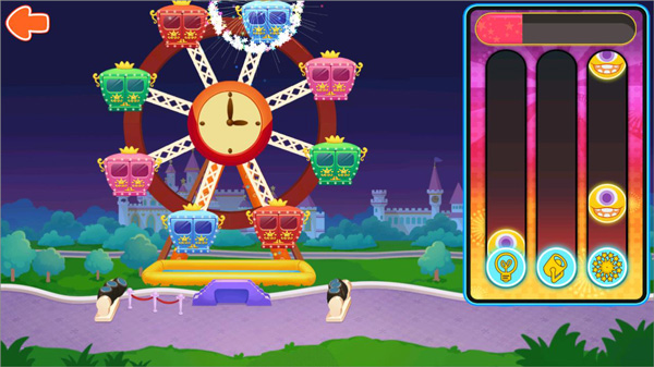 5、快来借助音乐游戏,为摩天轮点亮浪漫又绚丽的灯光与烟花~当下方的下落块与圆形图标重合的瞬间,赶紧点击对应的图标体验一下吧。