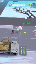 3、在清理的过程会自动收集地面上的各种物品,比如冰块、木板等等,但是容量是有限的,达到最大承载力时需要前往指定的地点将收集而来的各种物品进行出售,