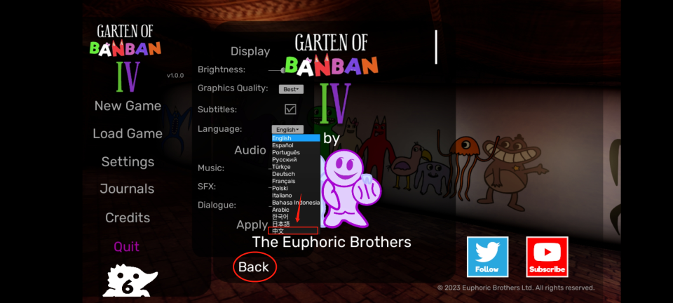 3、点击底部的【中文】,接着依次点击“Back”进行应用。