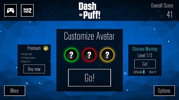 《几何逃生1》最新版本是一款能锻炼玩家反应能力的休闲小游戏,它的英文名称为Dash till Puff 。在游戏里,玩家仅需操控圆球飞行,穿梭于杂乱的规划图块之间。其采用简约的风格设计,搭配上炫酷的背景,游戏内场景会持续呈现渐变效果,颜色也不断变换,如此能有效避免眼睛过度疲劳。不过,别看它只是一款简单的小游戏,通关难度却着实不低,玩家得不断练习,才有可能通关。
