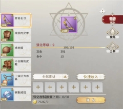 2、铁匠铺培养装备;每个英雄都有6个可强化部位,强化可以提高装备现有数值,最高可强化+9,另外强化过的道具也是可以作为更高阶的装备的强化材料哦,所以不要担心装备强化损失;装备精炼可以洗练出不同属性的词条,玩家可以根据英雄特性来决定最优选择。