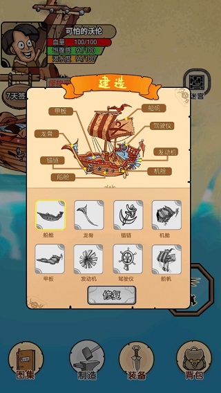 介绍完移动后,下面就是剧情任务,根据指示前往船只的方向,点击“修复”,此刻会有修复建造所需要的材料,如图: