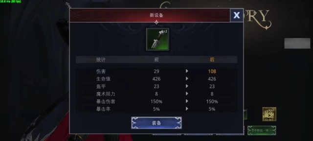 3、完成这段教程后,玩家能够获取新设备,并可进行【装备】操作。