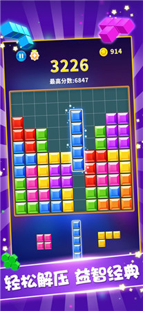 2、消除模式:消除游戏的关卡挑战玩法,点击3个及以上相同颜色叠在一起的俄罗斯方块即可消除,达到目标分后跳转下一关,一起在方块世界里打造块块传奇吧;