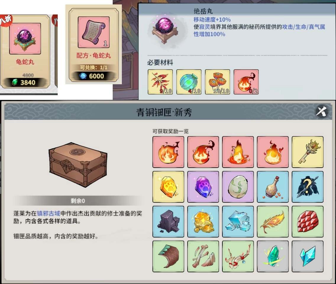宝光阁小概率刷出来红色丹药成品,但需要仙玉才能买。