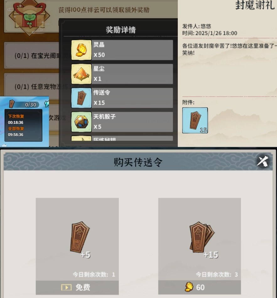 以上养成部分主要是这样,总结就是:优先升宠物并进阶。装备有强化材料就升,不刻意刷。资源副本全用来刷草药,灵石和须弥尘统统拿来炼丹药。
