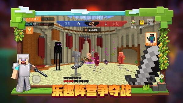 全新5V5的联机玩法《超激斗竞技场》正式上线,紧张激烈的大乱斗一触即发。红蓝两队组队竞技,一键传送游戏场景,开启巅峰对决!你可以使用多个方块世界的经典角色,解锁不同酷炫技能。如果你已经获取了熊大或光头强,他们也将在大乱斗中惊喜出现。在竞技场了有许多不同效果的增益箱子,除了技巧和实力,也需要一些小小的运气!完成每次对局后你还可以累积经验提升等级,从而解锁不同角色和更为丰富的奖励!
