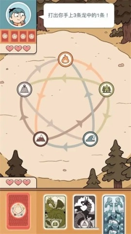 3、5条龙各有属性,相互克制。出牌时若克制对方则胜利。