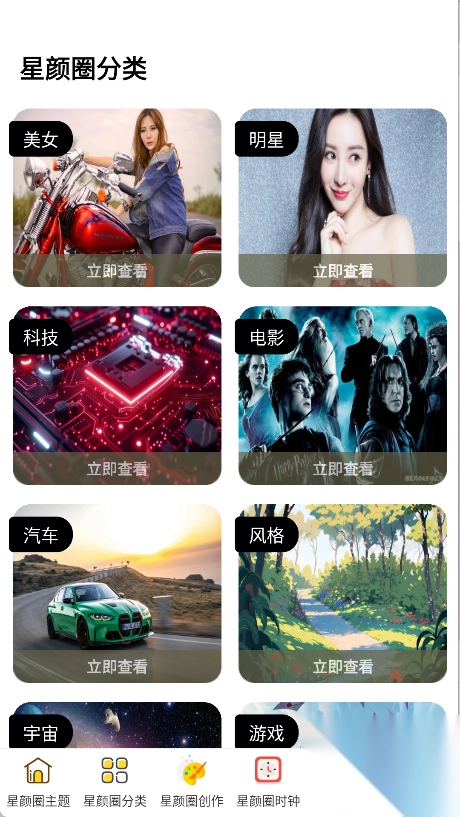 星颜圈这款软件,能让你尽情探索各类壁纸软件。在这里,你随时都能领略到不同的精彩,所汇集的精彩内容十分全面。你可以实时知晓自己喜爱的内容,轻松掌握不同的壁纸信息,更好地感受高清壁纸的简洁之美。不仅如此,还能自由切换你心仪的主题,深入了解各类主题的独特特色。