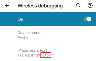 ● 填入"无线调试"中的端口号(此端口号会在每次启用"无线调试"时变化)