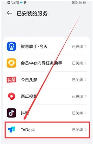 滑动至页面最底部,能看到一个“已安装的服务”选项,点击该选项,即可进入“已安装的服务”界面(如下图所示)。