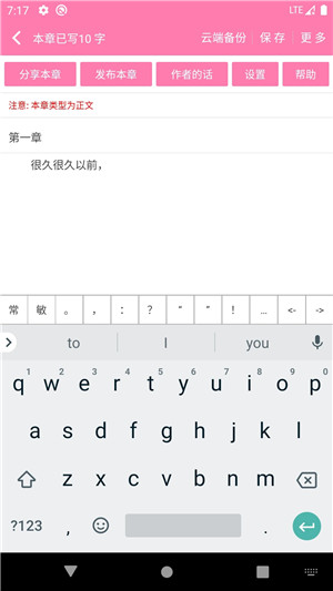 5、具备云端备份功能,且能恢复至本地,通过多重机制保障数据安全,无需担忧小说遗失。不仅如此,还支持手机与电脑同步写作,兼顾便捷与高效。