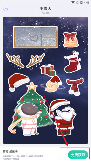 3、接着点击“免费获取”这一功能选项,就能下载心仪的贴纸。