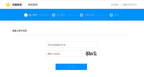 在邮箱登录页面,选择"忘记密码",进入天翼账号密码找回页面。