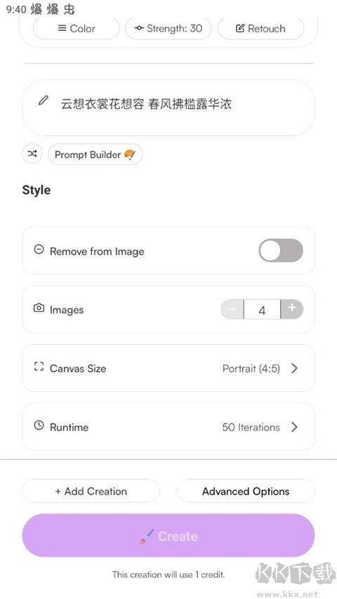 5、完成添加操作后,点击下方 “创作” 按钮,随后等待软件借助人工智能技术生成绘画作品。