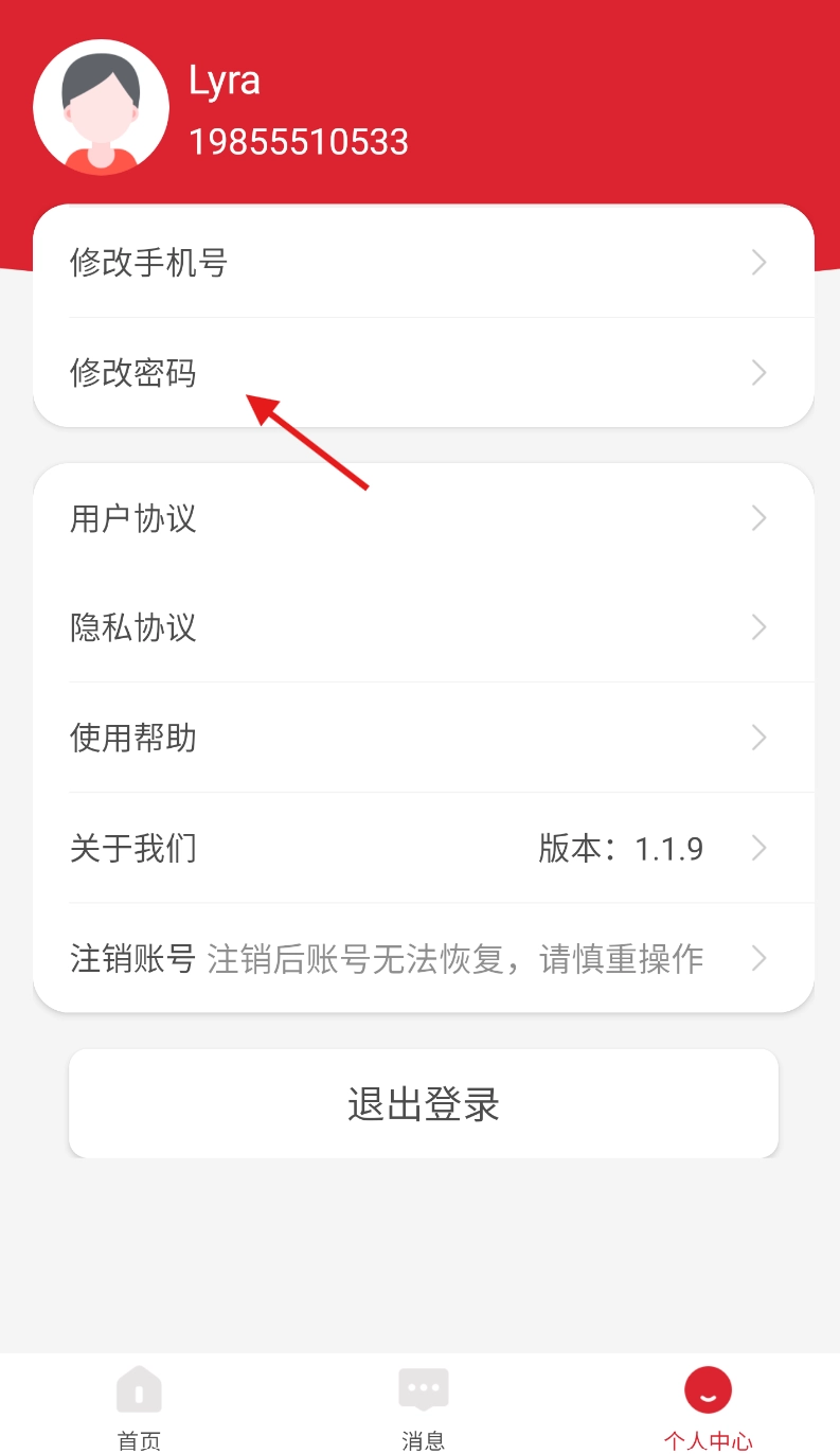 2、进入个人中心后,仔细浏览页面功能,找到 “修改密码” 入口并点击进入设置界面。