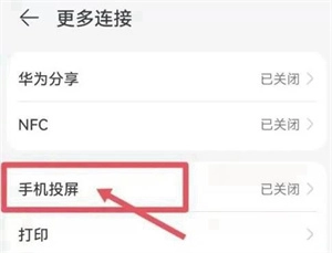 2、在更多连接选项里,通过下拉操作找到手机投屏功能,点击进入该功能界面。