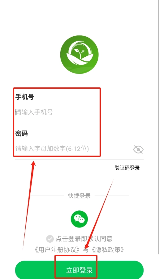 2、在登录页面输入常用的手机号码等待验证码,把短信收到的六位数字准确填入验证框内。