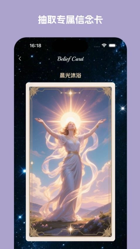 2、丰富的正向激励内容,包括每日箴言和随机信念卡,为用户提供持续的心灵滋养。