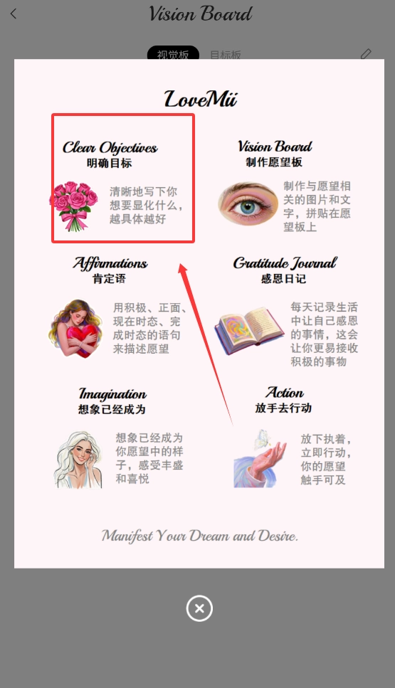3、愿望管理功能融合了目标管理SMART原则,提供模板化规划工具,让目标设定既充满想象力又具备可行性。