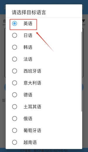 2、挑选需要翻译的语言类型,保证后续翻译和需求一致,以方便得到精准的结果。