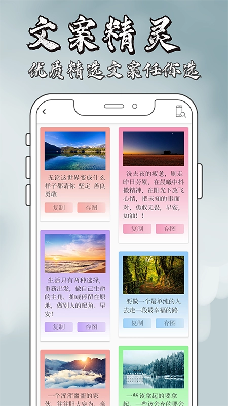 2、提供心情文案、个性文案、名人金句、经典美文等多种类型的文案。