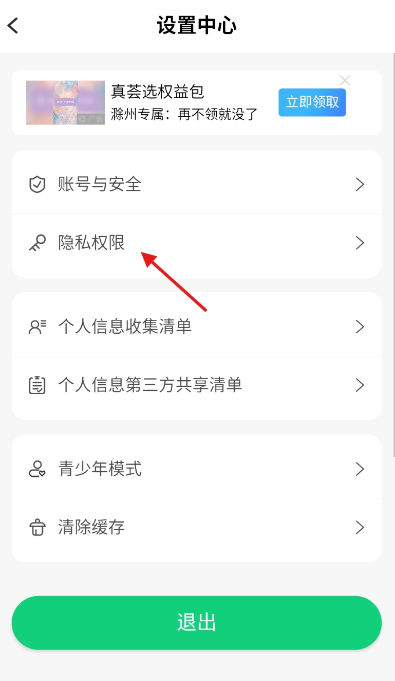 3、在设置界面中,下滑查找 “隐私权限” 选项,点击该选项进入隐私相关设置页面。