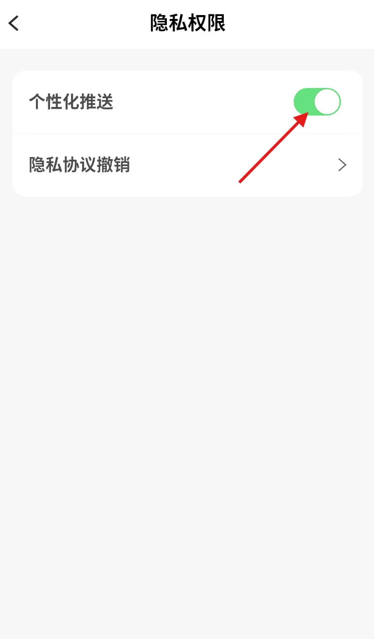4、进入隐私权限页面后,找到“个性化推荐”这一功能选项,点击它旁边的开关按钮,就能完成关闭设置。