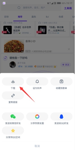 2、点一下省略号,下方会出现一个“下载”按钮,点击该按钮,即可将当前选中的铃声保存到本地。