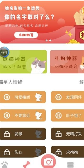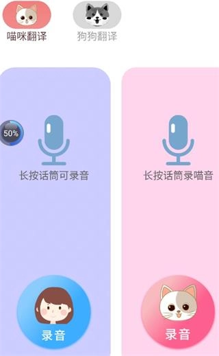 3、按下录音键然后说出我们想要说的话,系统会自动翻译给狗狗听4、我们还能选择使用撩汪、撩猫功能,里面有不少对应宠物猫狗情绪的内容,是不是特别有意思呢