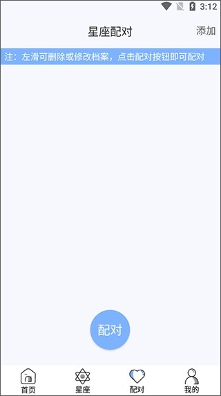 1、打开星座屋手机版,在配对板块里找到并点击“配对”按钮;