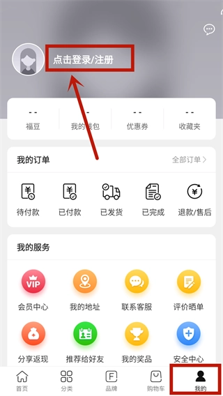 - 若您已是我们的注册用户,可直接点击登录;若是未注册用户,请依照下图箭头指示的位置点击注册。