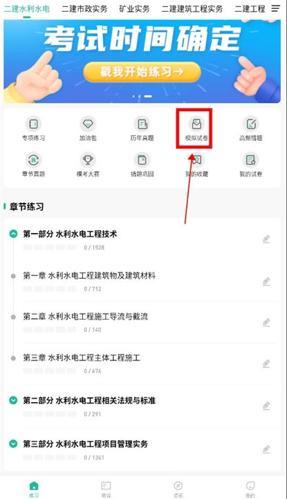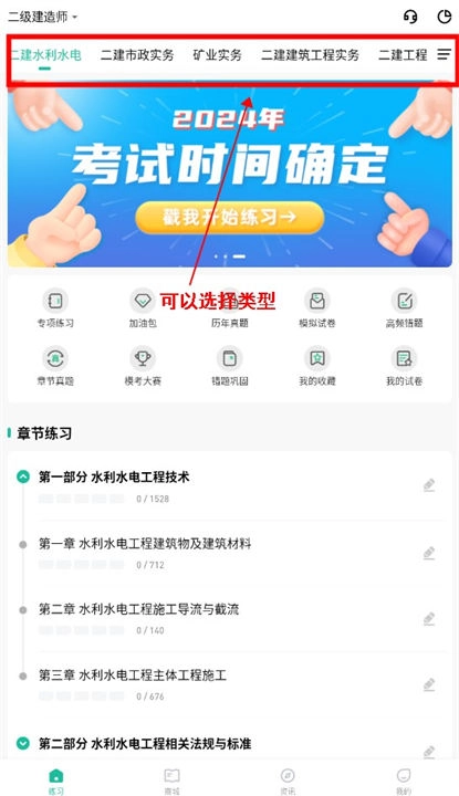 用户可以在该软件中免费体验二级建造师科目的章节练习,这些练习支持用户自由使用。