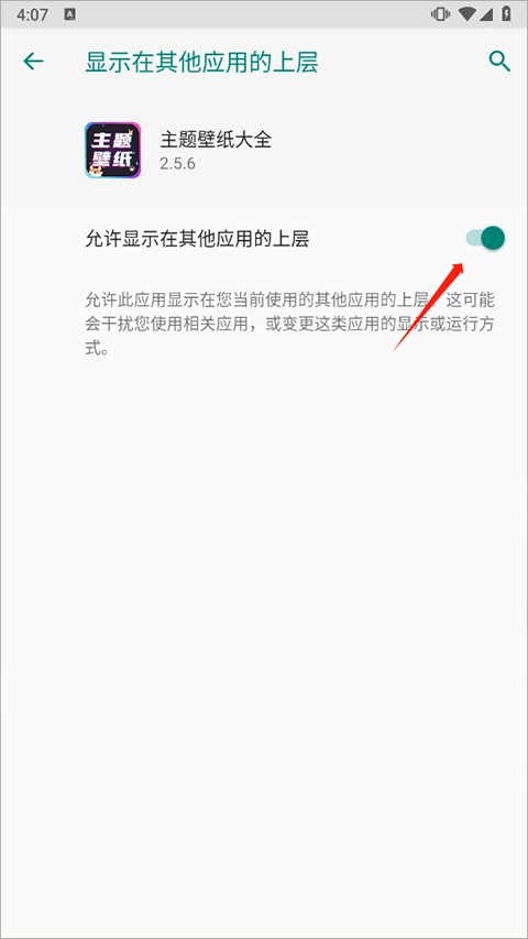 4、随后依据提示开启允许显示在其他应用上层的功能。