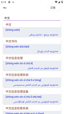 4.选择汉维翻译模式,输入关键字即可开始翻译