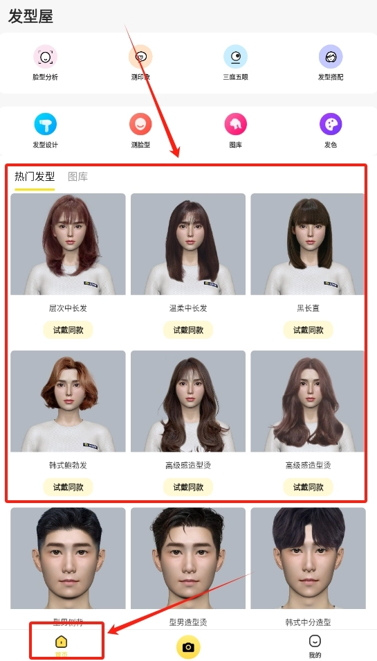 2、海量明星网红同款发型数据库持续更新维护,完整涵盖当下最流行的各类时尚发型款式和发色选择方案。