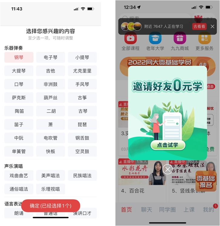 1.首先进入网上老年大学“上课”界面