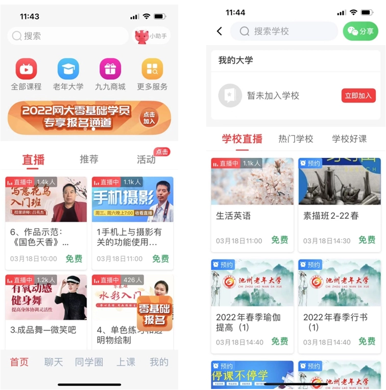 5.点击“老年大学”,点击“立即加入”