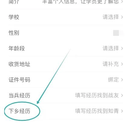 2.然后进入个人资料页面,点击下乡经历